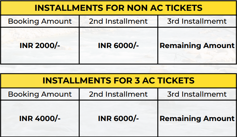 destination you are travelling to. - As Mentioned in itinerary we have two overnight Journey