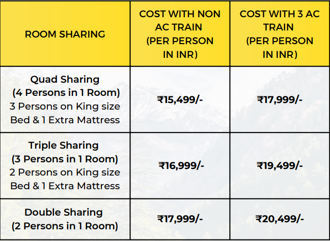 on quad sharing. - Meals – Breakfast, Lunch & Dinner (As Mentioned)